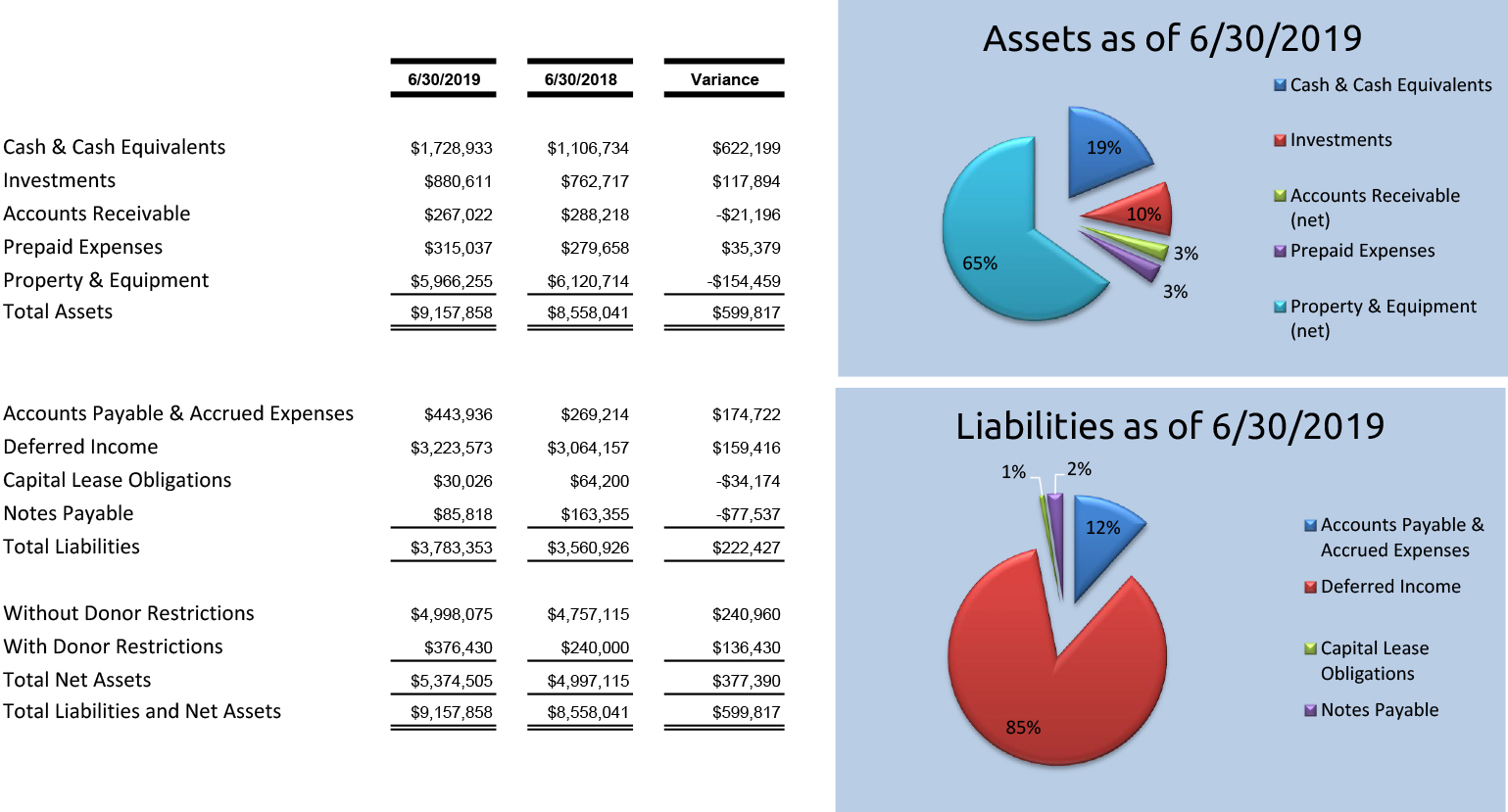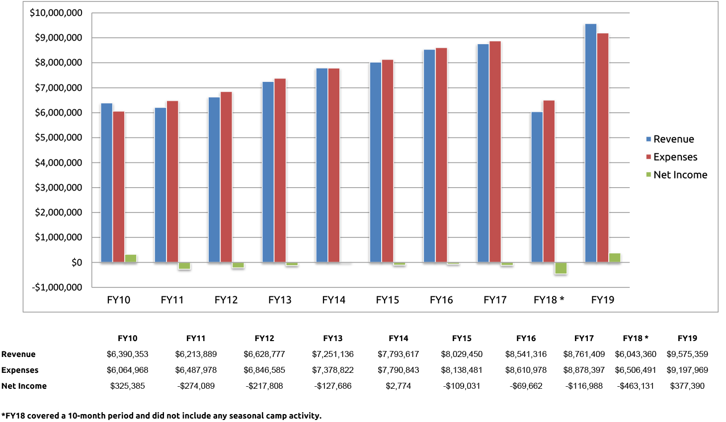 FY19 was a strong financial year for the JCC. Several factors contributed to our first significant operating surplus in several years. With the change in fiscal year timing, for the first time we began our year with Camp Yachad, and experienced a very successful summer. Our school and after school programs continue to flourish, and membership numbers are also healthy – all contributing to the positive financial results. Additionally, fund development – a critical new focus – has helped to bolster our JCC financial profile. Our community invested nearly $178,000 in our annual fund, and our J-Embrace matching grant raised a total of $210,500. Overall, this operating surplus reverses a trend which had been eroding our net assets and instead allows us to re-invest in our JCC by setting aside funds for future capital needs, assisting people who are struggling financially and rewarding our dedicated JCC professionals. We are proud of and energized by these results and are so grateful for our generous and supportive JCC community.