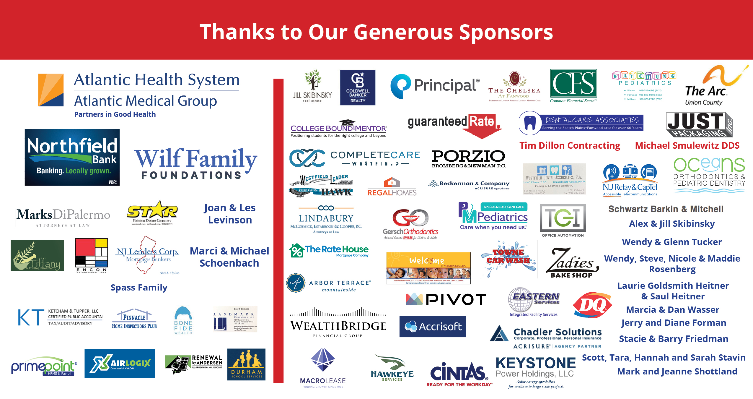All sponsorships will be listed on event communications and event signage. Sponsors of $1,000 or more will have year-long visibility with their clickable logo on the JCC website and a banner hanging at the JCC.